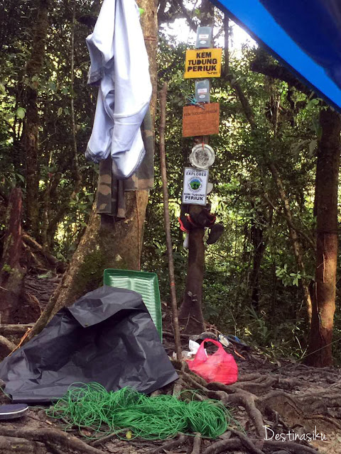 Sampai di campsite Kem Tudung Periuk. Unik namanya. Selepas meredah 4 puncak tipu. Lega rasa bahu dapat lepaskan beban beg. Perjalanan dari bawah ke tapak khemah masih mudah kerana kami bermula dari 'pintu rimba' bukan ikut laluan asal laluan paip. Persiapkan khemah dan masak untuk makan tengah hari. Selesai urusan, bergerak ke Air Terjun Pelaur untuk bermandi manda dan recharge energy.